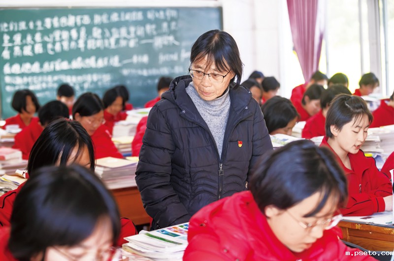 图为2020年12月1日,张桂梅(中)在教室里检查学生上课情况。 新华社发 陈欣波/摄