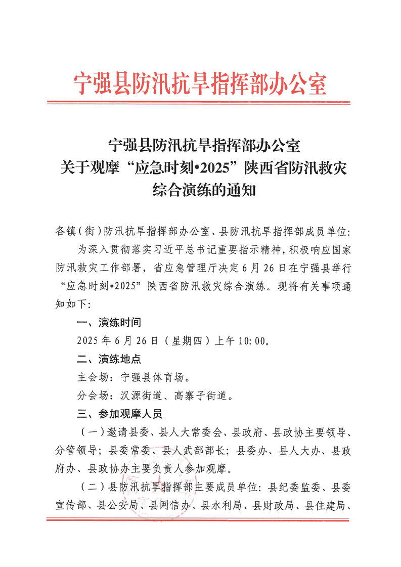 关于观摩“应急时刻·2025”陕西省防汛救灾综合演练的通知