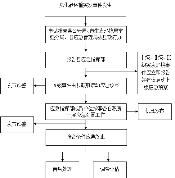 政府部门建立联动工作机制。联合市生态环境局宁强分局、县应急管理局、县公安局、县交运局、县公安交管大队、县消防救援大队等建立应急联动工作机制,明确突发事件发生时的信息报告、工作交接、应急协作等职责,其他部门接到危险品车辆运输事故及泄漏事件信息报告后,应及时将事件基本信息通报县政府办、县应急管理局、市生态环境局宁强分局。