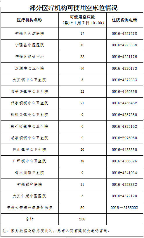 为引导群众有序就医,最大程度满足急危重症患者住院需求,现将截至1月7日12时我县部分医疗机构床位空余情况通告如下,方便群众就医。