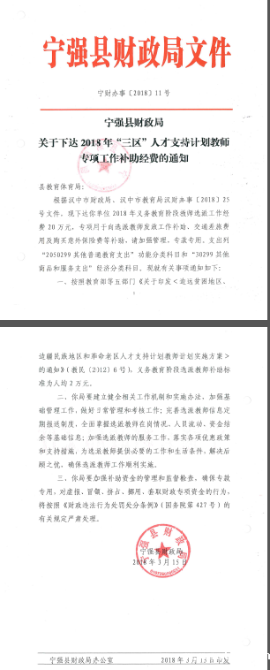 关于下达2018年“三区”人才支持计划教师专项工作补助经费的通知