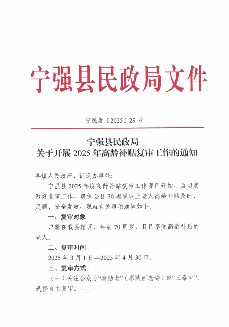 优米app赚钱民政局关于开展2025年高龄补贴复审工作的通知
