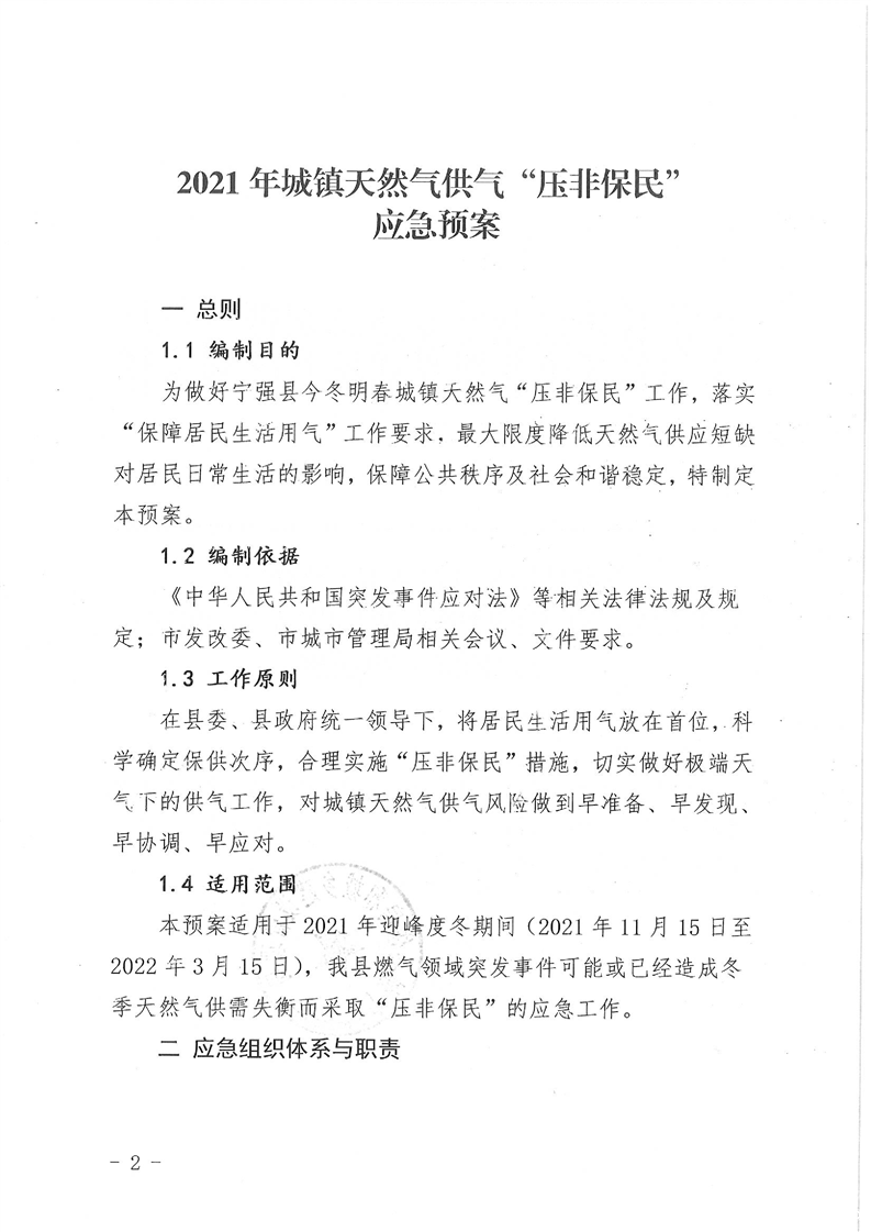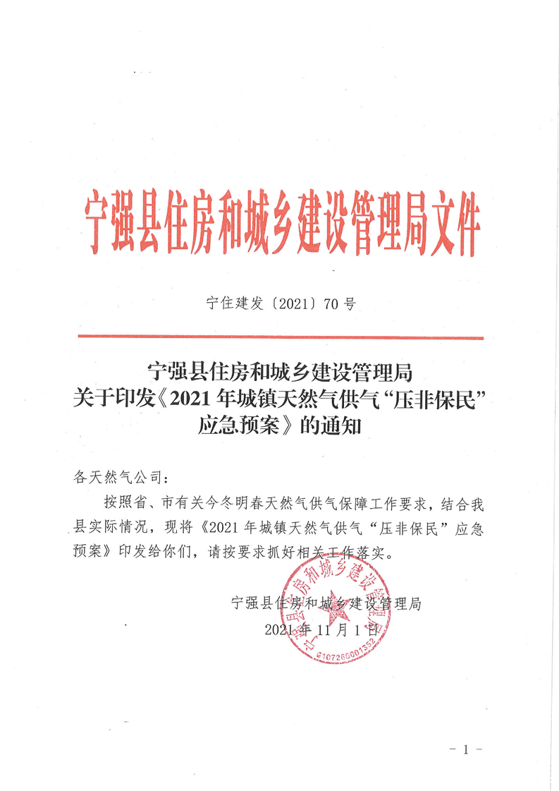 宁住建发〔2021〕70号关于印发2021年城镇天然气供气“压非保民”应急预案的通知