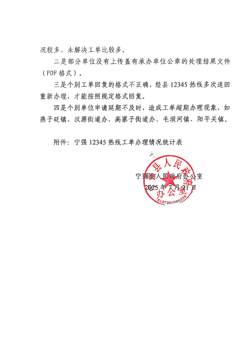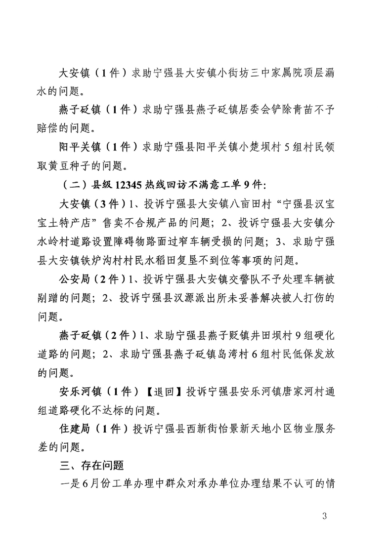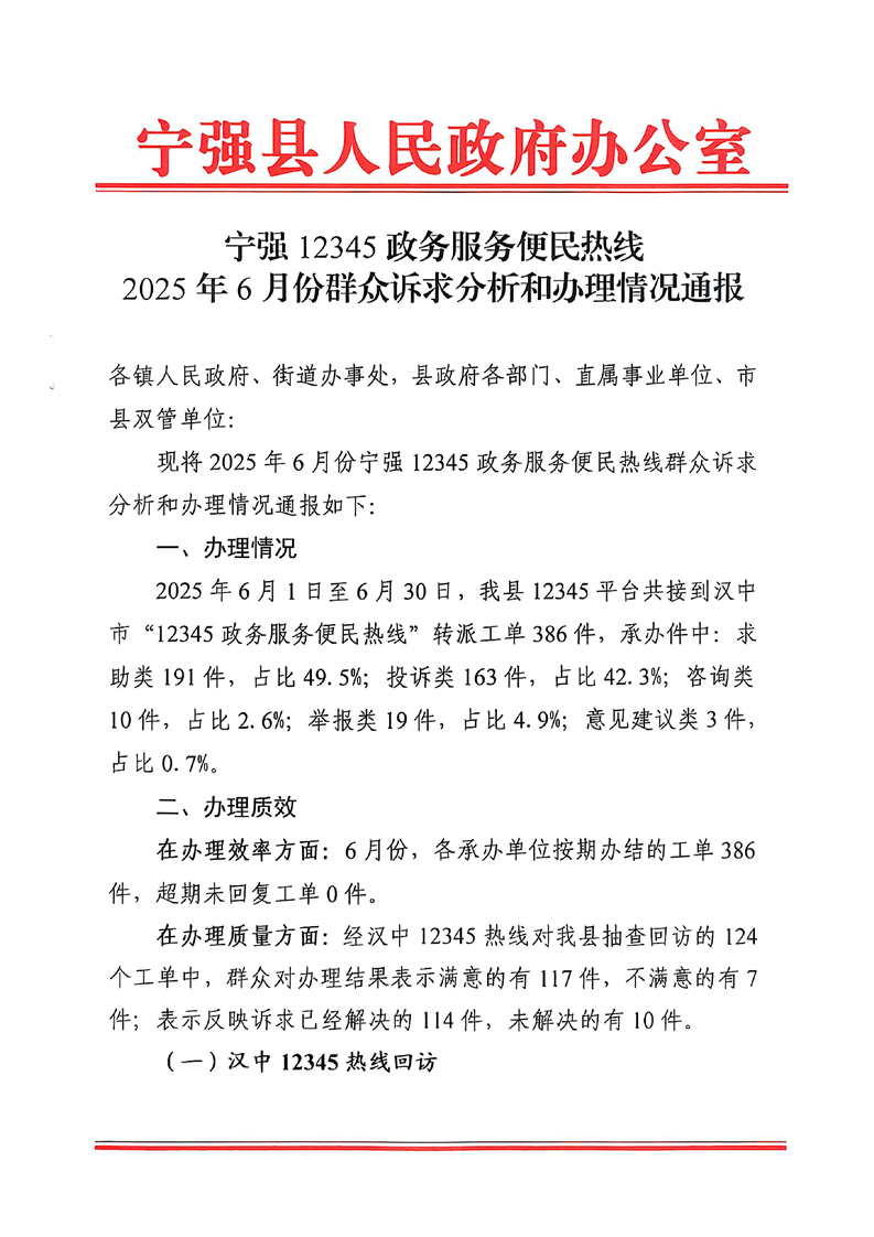 宁强12345政务服务便民热线2025年6月份群众诉求分析和办理情况通报